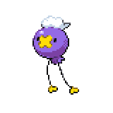 Drifloon are a Pokémon that have the appearance of a purple balloon. Its face has two beady eyes and a yellow patch in between them that looks like a cross, which is where the Drifloon's mouth is seen such as in the Anime or Pokémon-Amie. At the top of their head, Drifloon have a small bit of "fluff" that appears to be a small cloud. Near the bottom of their body are two arms, skinny enough to be like string, with yellow heart-shaped hands at the tips.