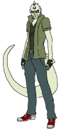 Before he became mutated, Iggy claims that he was once a human. He states that he infiltrated, what can assumed to be, a chemical power plant and "turned off" something unknown that resulted in a chemical meltdown. He then says that acid drained down into his skin and mutated his body, giving him a lizard-like appearance and abilities. It is not explained for what reason Iggy infiltrated a power plant as he provides no further details.
