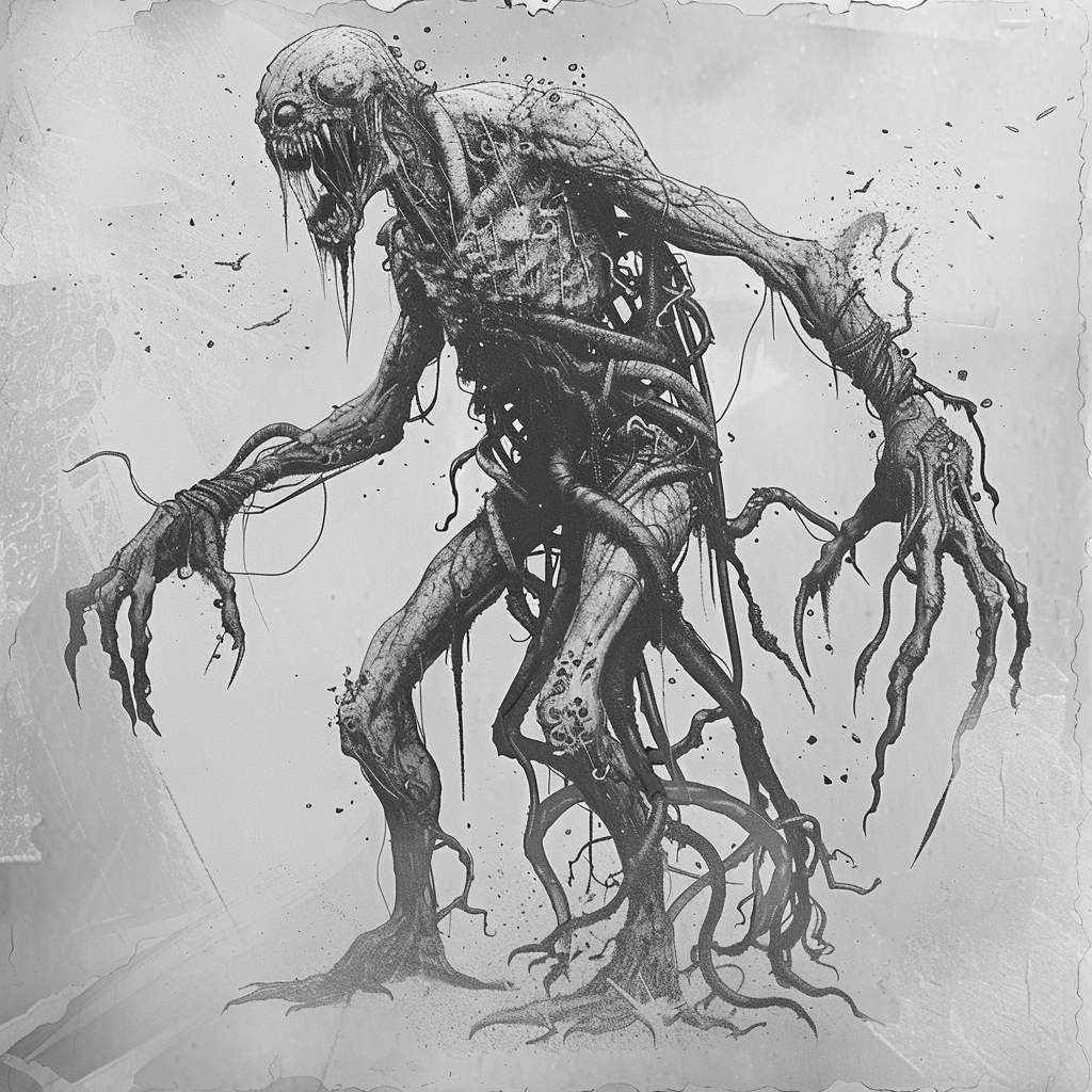 Madman appears as a man with black hair, dressed in a black suit and tie with glasses on. While a normal looking man, when he shows his true self, his face starts developing black crack like marks implying his form is merely a disguise further hinting on his inhumanity. He has red eyes underneath his glasses, that glows bright. He has shape-shifted into an eldritch, unholy abomination of flesh and bone in what could possibly be his true form. Back then, he used to wear a long dark cloak to conceal himself.