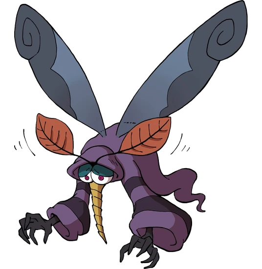 Negatibuzz looks exactly like his canonical counterpart due to being a fanonized version of him. He appears as a mosquito-like Yo-kai. He has large round eyes with a long thin proboscis and blue eyelids. He also wears a magenta robe with his head hanging low. He also has skinny black arms and the end of his robe forms a ghostly tail and his tail and sleeves have dark stripes.