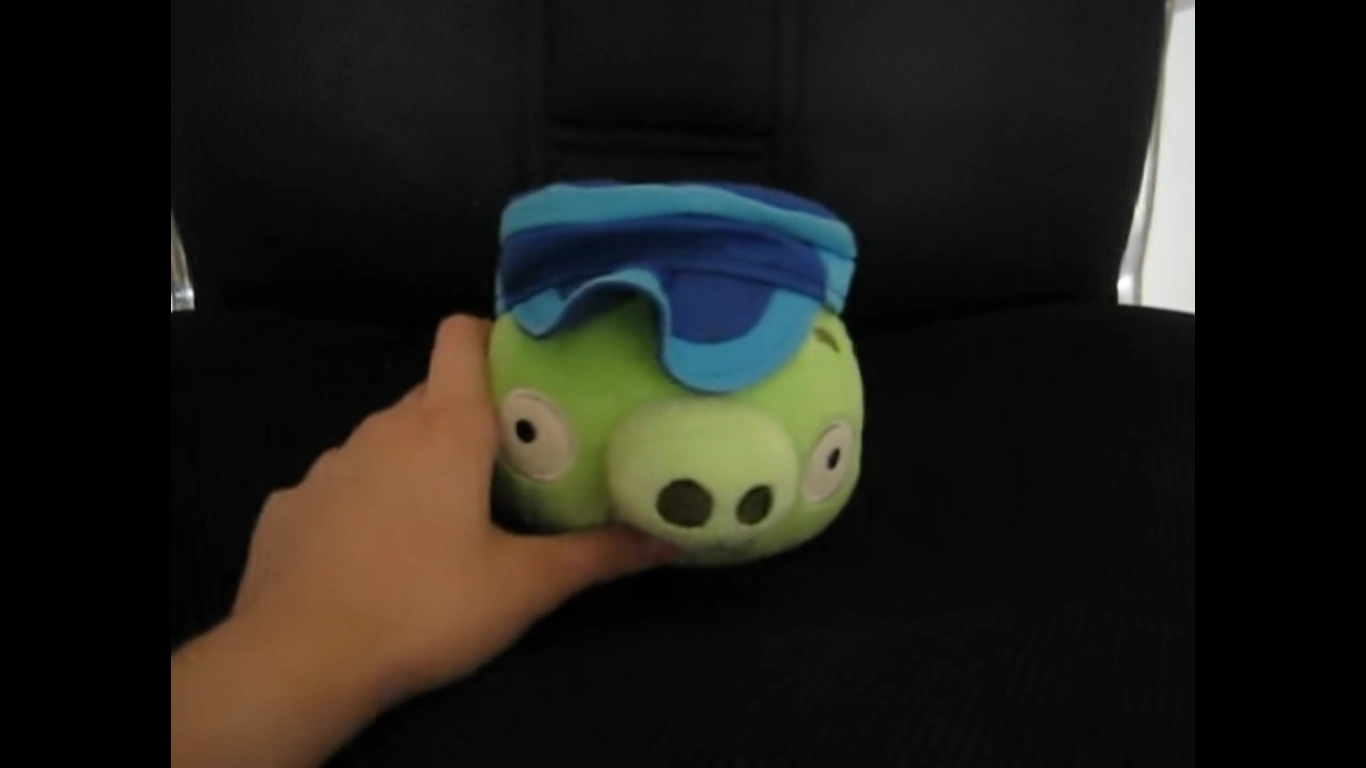 He is a 5-inch green pig plush with a blue mailman's hat and bag, in Angry Birds Epic he wears a white headband around his head.