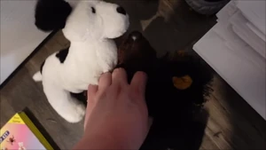 Tress trying to attack the Webkinz and Beanie Babies out of rage...