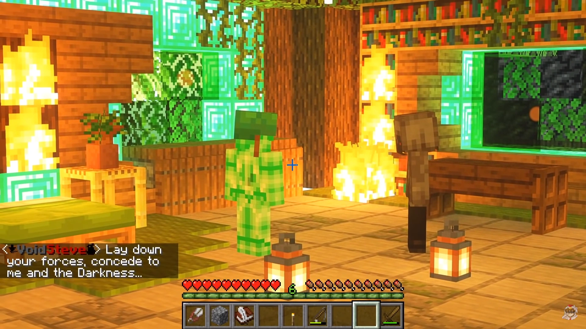 Void Steve manipulating the Green Leader, whom he had infected with the Darkness.