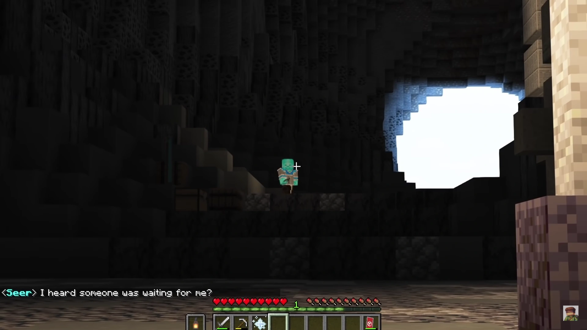 One day, Seer arrived at the cave the Giants lived in to help with summoning their creator: Dream Steve, and met Colle, a Red Steve, who was surprised to know about the Blue Steve's existence and that Seer came from the world where good Steves pass on. Colle quickly explained that throughout the past few days, various Steves had been corrupted and infected by a great evil known as Dread Steve. Knowing that Seer was able to sense spirits, Colle successfully recruited Seer in his mission to summon Dream Steve and left the cave to head through a nearby portal leading to the village of the Winter Steves. As Seer and Colle arrived, they headed to the house of Winter Steve where the Winter Leader was infected with Dread Steve's corruption. As Seer approached the Winter Leader and used his spiritual sensing abilities, he deduced that the Winter Leader was being exposed to his worst nightmares. Seer and Colle left soon after and climbed the mountain to the top where they found a ritualistic summoning circle where Seer proceeded to call out to Dream Steve, summoning him.