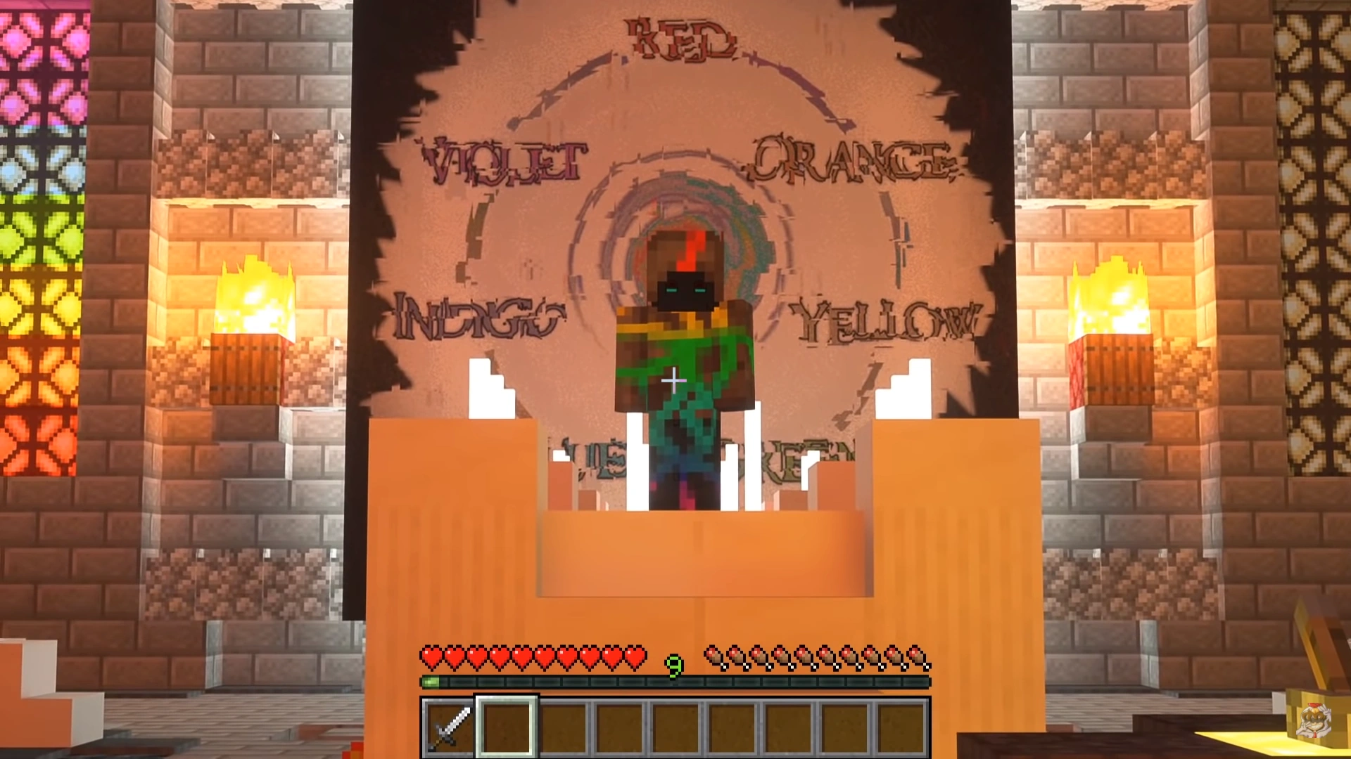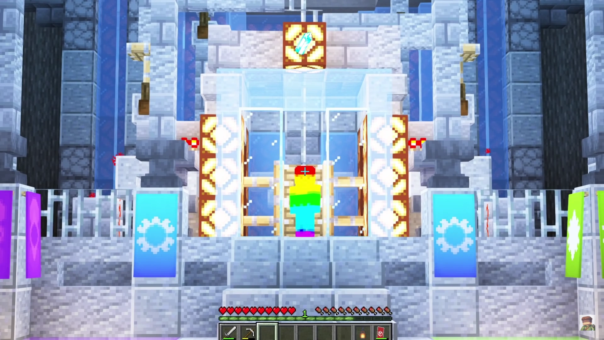 Void Steve transforms into Rainbow Void using the crystals.