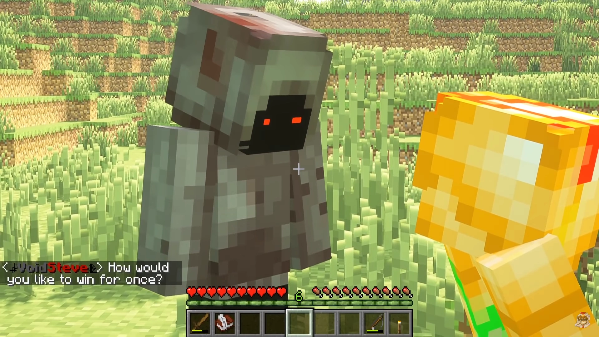 Void Steve cowering before Colle.