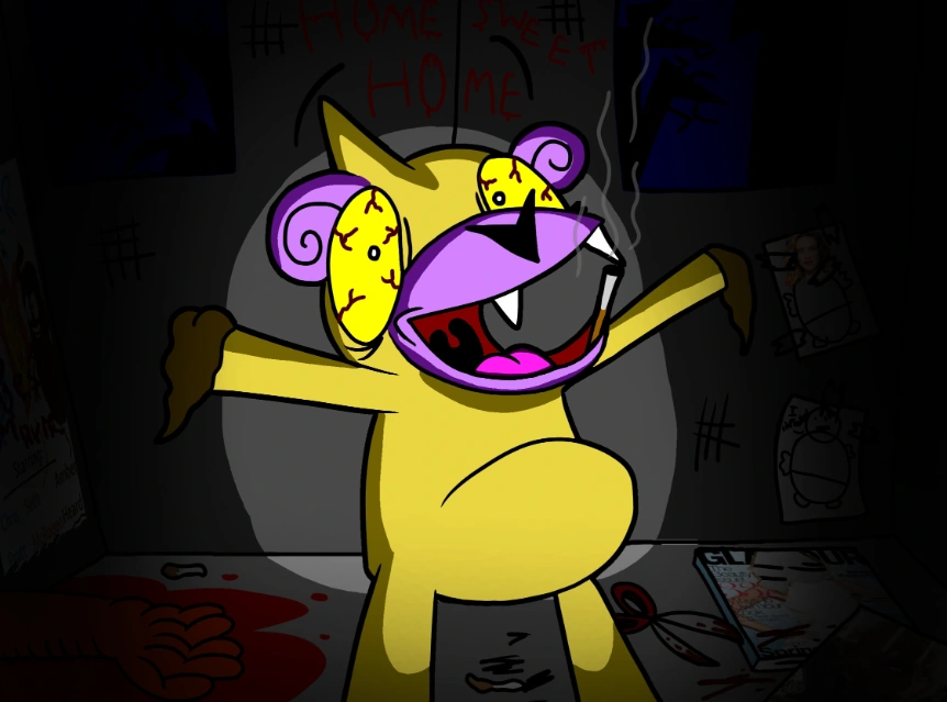 Welfer is shown to be a simplistic creature standing on all fours, while also often standing on two legs as well. His main color is faded yellow, and he has a snout that's a faded purple. His arms resemble hooves, and are shown to slimy and tentacle-like. He has a horn on one side of his head that contains pepper spray he uses to mace people, along with curly ears on each side of his head. He is often seen with a cigarette in his mouth, and has a massive smoking addiction.