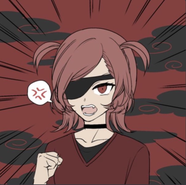 As a human, Wrath was around 16 years old. She had white skin, red eyes, red hair that was cut quite short with small pigtails, a red and black shirt and also wore an eyepatch.