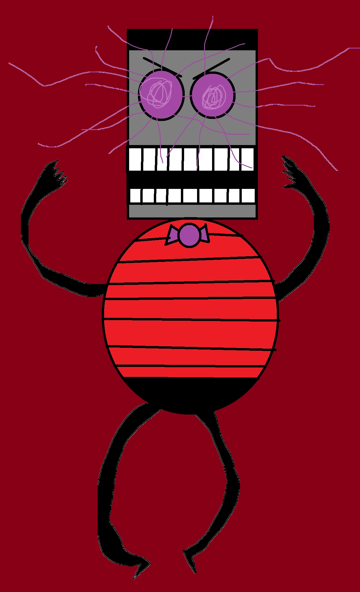 Zorthenport looks a bit drawn badly, with little white pupils, A messed up lined mouth, thick hair, a overdrawn torso, fat legs, badly drawn arms, and a overlooking head, Is because he was a nextbot in Garry's Mod. But it was a meme in Garry's Mod.